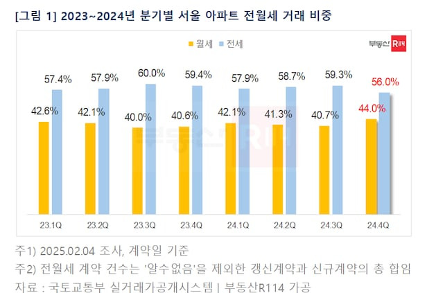서울 아파트 월세 비중 44% 전분기 比 3.3%p 증가