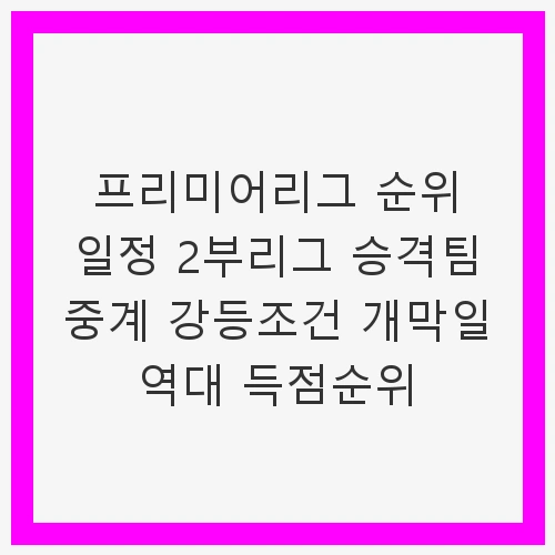 프리미어리그는 세계적으로 가장 인기 있는 축구 리그 중 하나입니다. 매 시즌 다양한 팀들이 승격과 강등의 기로에서 치열한 경쟁을 펼치고 있습니다. 이번 블로그에서는 "프리미어리그 순위 일정 2부리그 승격팀 중계 강등조건 개막일 역대 득점순위"를 주제로 프리미어리그의 여러 측면을 살펴보겠습니다. 이 글을 통해 프리미어리그의 매력과 함께 그 안에 숨겨진 복잡한 요소들을 이해할 수 있을 것입니다.