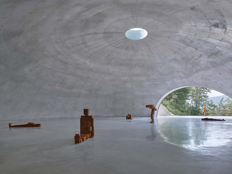 GROUND는 뮤지엄 산의 가장 안쪽에 위치하며, 삼각형 나선형 계단을 따라 내려가야 합니다. 이 과정 자체가 관람객에게 특별한 경험을 선사하며, 반원형의 독특한 공간에서 곰리의 작품을 감상하는 것은 매우 흥미로운 일입니다. GROUND에서는 소리의 증폭을 경험할 수 있는 공간적 구조가 마련되어 있어, 발자국 소리조차도 크게 들리는 이색적인 체험이 가능합니다. 이러한 환경은 각각의 작품을 더욱 특별하게 느끼도록 도와줍니다.